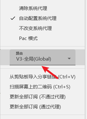 用鼠标复制所有节点链接一键导入到软件中。以v2ray为例,导入后界面: